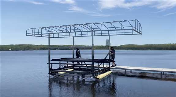 Float your boat lift for easy installation, removal and mid-season adjustments with our bolt on inflatable airbag system.Come stop by the booth and say hi to Donnie, Cindy and Tim!